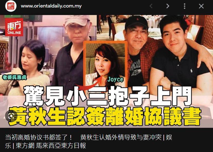 老婆得知後也相當心碎,氣炸喊要離婚,當時已經走到簽離婚協議這一步,但後來吳惠貞為了兒子和家庭,最終沒有將離婚協議書交出去,不過小三的身分背起底後,也讓人頗為驚訝,因為竟然是電影監製岑建勳的外甥女Joyce,在同行間也已是早就知道的事情。